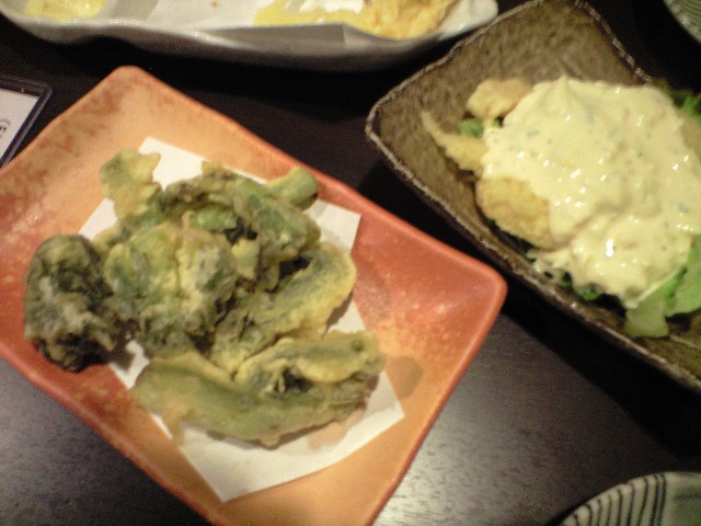 野沢菜の天ぷらとエビタルタル☆