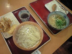 橙は釜揚げうどん中と野菜かき揚げと鳥天ぷら(笑)
