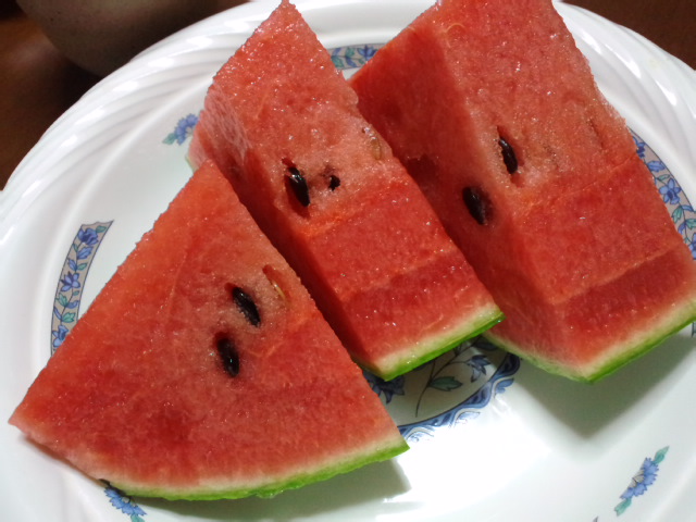 汗だくな中、碧さん家に戻るとスイカが!!(o^∀^o)