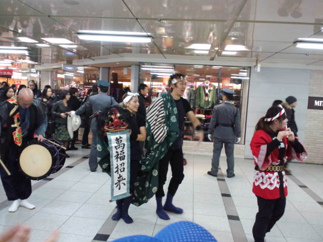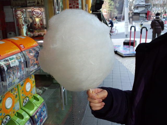 初売り散策に向かう所で獅子舞と軽快な笛の音を楽しんだり、プリクラ取ったら綿アメ貰えて(かなりでっかいヨ♪)仲良く分けっこしたりしました(≧∇≦)